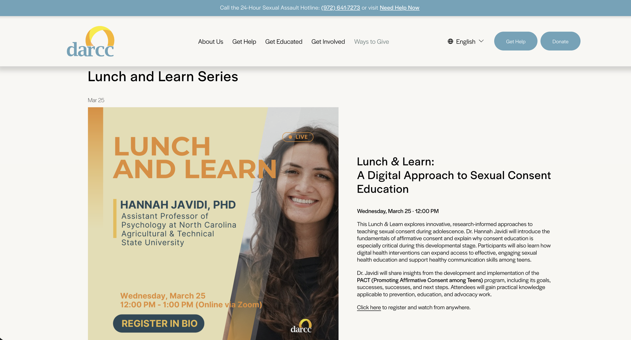 Dallas Area Rape Crisis Center Lunch & Learn, March 2026